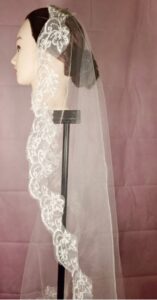 Simple and Elegant lace edge veil. Does NOT include comb to allow for several different ways to be worn. Approx 1.5m long